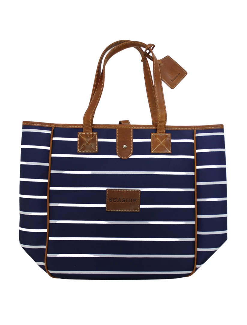 Made of durable, water-resistant nylon canvas. Premium Florentine leather accents and trim. Seaside custom poly twill lining.