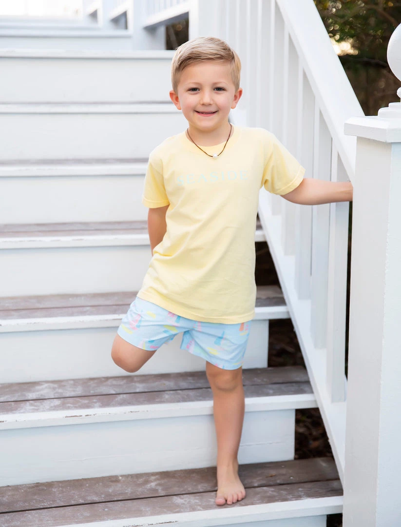 Short-Sleeve 100% Preshrunk Cotton Garment Dyed tee. Seaside logo screen printed on the front. Tagline, “fun is good.” Dr. Seuss, on the back.