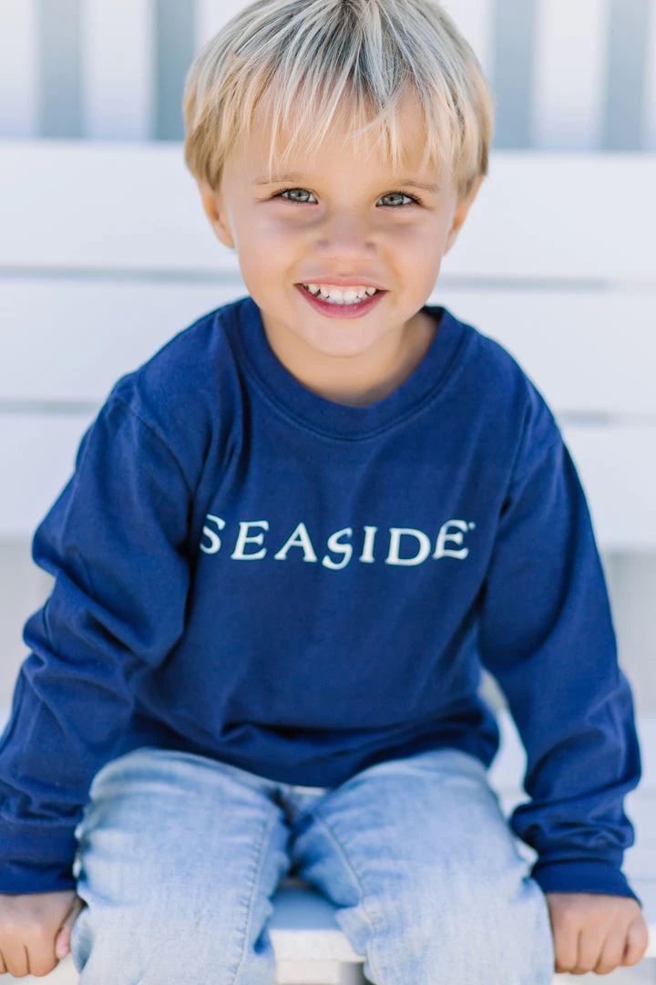 Long-sleeve 100% Preshrunk Cotton Tee. Seaside logo screen printed on the front. Classic “New Town…Old Ways” graphic on the back.